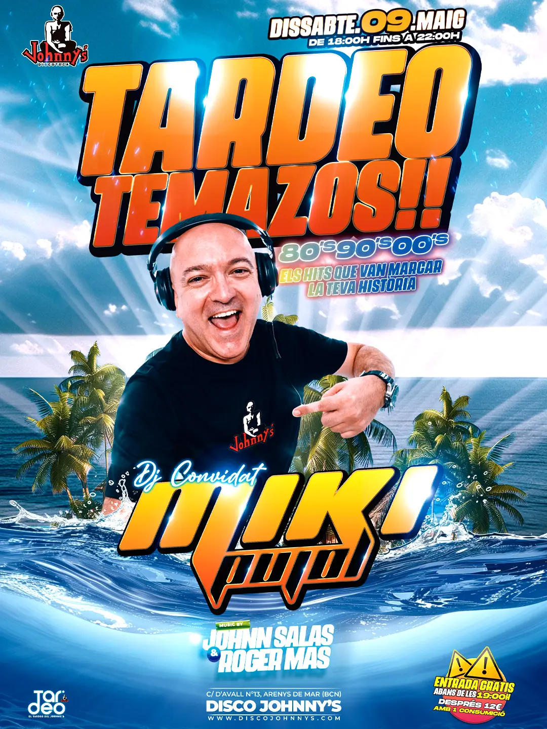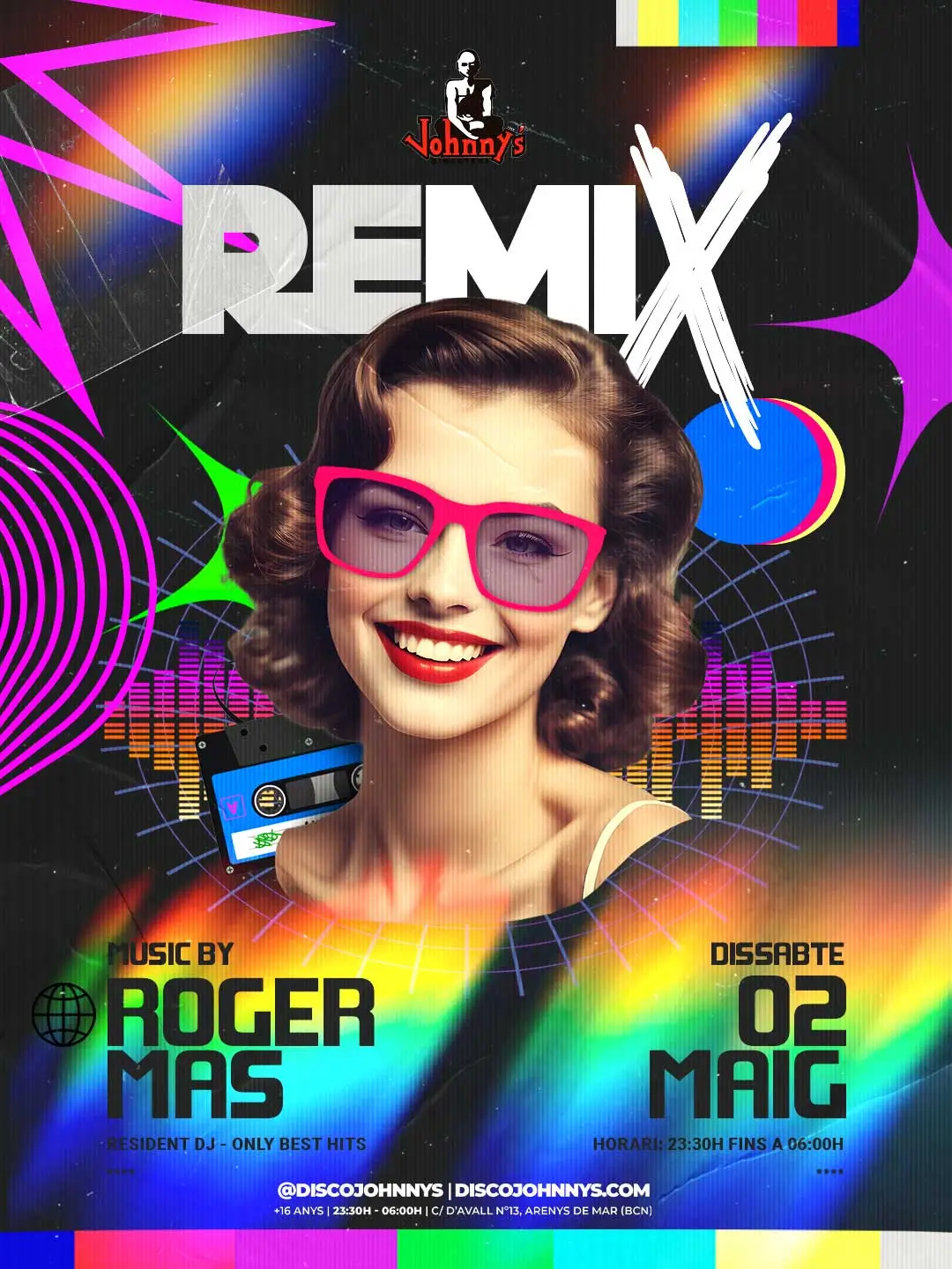 ¡Bienvenido a la Discoteca Johnny’s, la discoteca de Arenys de Mar! Si estás buscando una noche llena de diversión, música actual y buen ambiente, has llegado al lugar correcto. Somos la discoteca más antigua de Cataluña y conocidos por nuestras fiestas temáticas. Hacemos nuestras sesiones de música con djs locales y residentes. En nuestra discoteca, TODOS SOMOS VIP. No funcionamos con reservados; nuestro lema es NO MESAS VIP.